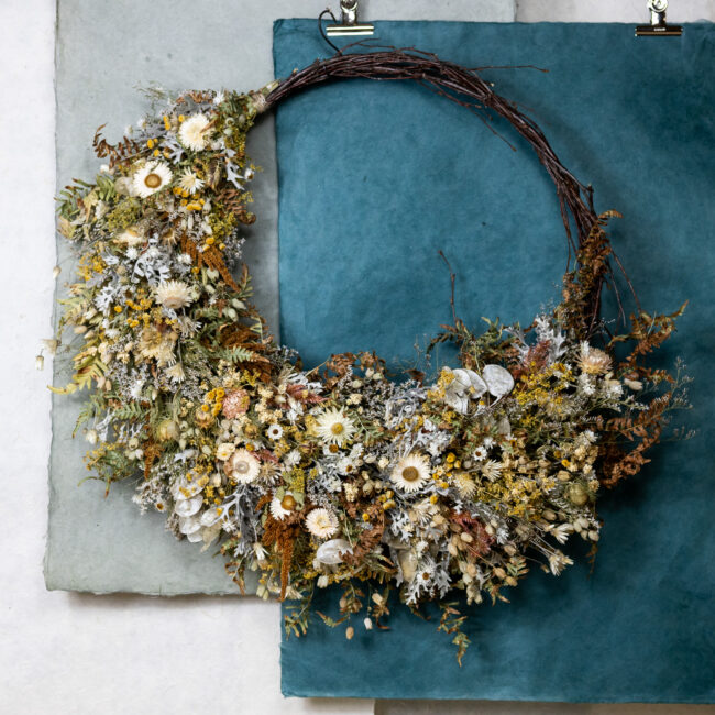 Ihr habt individuelle Designwünsche z. B. bezüglich einer besonderen Blumenauswahl, Farbe oder Größe eures Kranzes? Dann erstellen wir euch gerne ein Angebot auf eure Anfrage per Telefon oder Email.